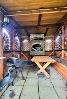 На участке расположен еще один двухэтажный садовый дом 45 м2, хозблок, закрытая беседка с мангальной зоной, летняя кухня, летний душ, хозпостройка-мастерская, теплица. Сделано уличное освещение.
