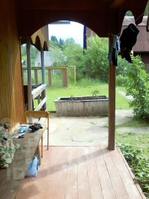 Уютный деревянный дом,со своим выходом в лес.(Сосны,ели)...Дом в ХОРОШЕМ СОСТОЯНИИ в 2 этажа с мансардой, общая площадь дома 91,6 кв.м ,есть длинный закрытый балкон на 2 этаже. Есть 2 террасы( Одна закрытая,другая открытая под навесом и пол наливной -бетонный) Есть два выхода из дома (Один парадный,другой выход на задний двор.Есть помещение под баню(раньше и была баней),Есть достаточно большая беседка с лавками по периметру беседки.Вид из беседки на весь участок и на хвойный лес,очень красиво!!!! В доме очень крепкая лестница...(Освещается полноценным окном) Комнаты -первый этаж большая комната 33,7 кв.м,на втором этаже 15,5 кв.м,и 11,7 кв.м,терраса закрытая 11,1 кв.м. Внутри уютно из-за отделки вагонкой,мебели и встроенных деревянных шкафов При желании мебель остается новым хозяевам