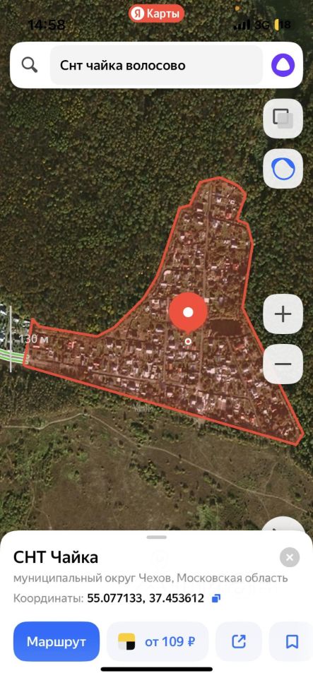 продаю участок. 6 соток. снт чайка чеховский район. снт существует давно. много постоянно проживающих домов. на участке установлен бетонный гараж, бытовка( под снос) , фундамент под дом.