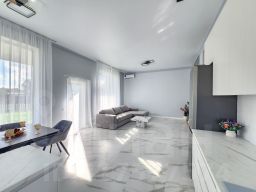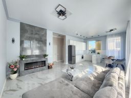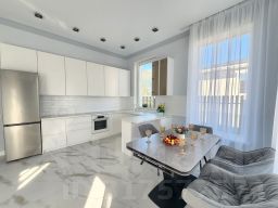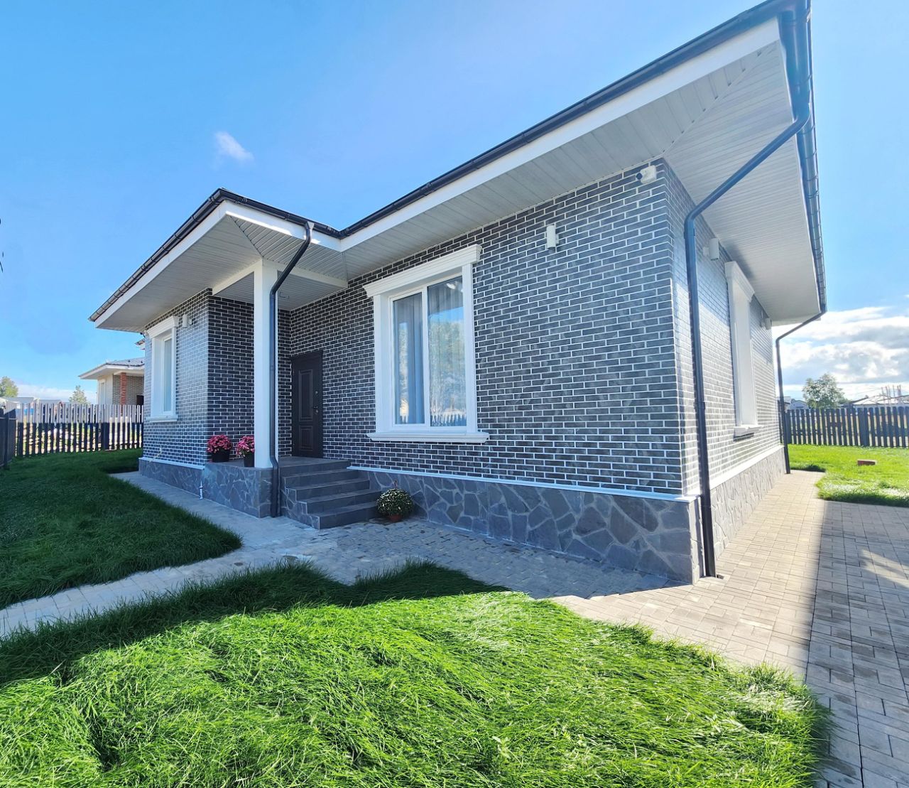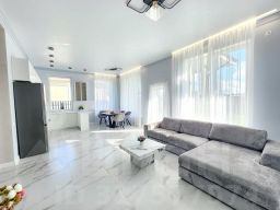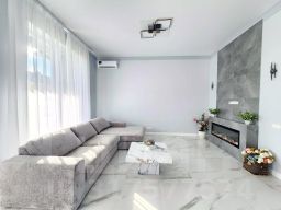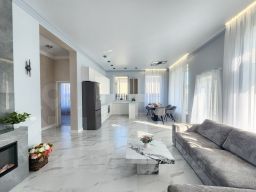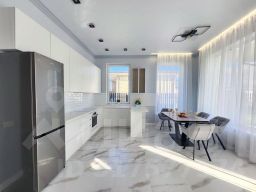 Новый дом площадью 154 кв. м. с дизайнерским ремонтом и 4-мя спальнями на земельном участке площадью 6 сот. В доме 3 гардероба и 2 санузла.