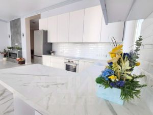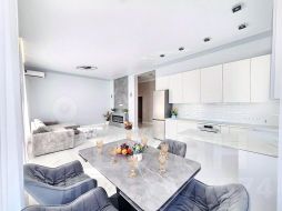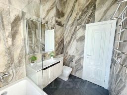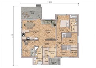 - гостиная, кухня-столовая с водяным подогревом пола (оборудована мебелью и необходимой бытовой техникой), хозяйская спальня со своим гардеробом и санузлом с подогревом пола, три отдельные спальни, два гардероба, веранда.