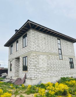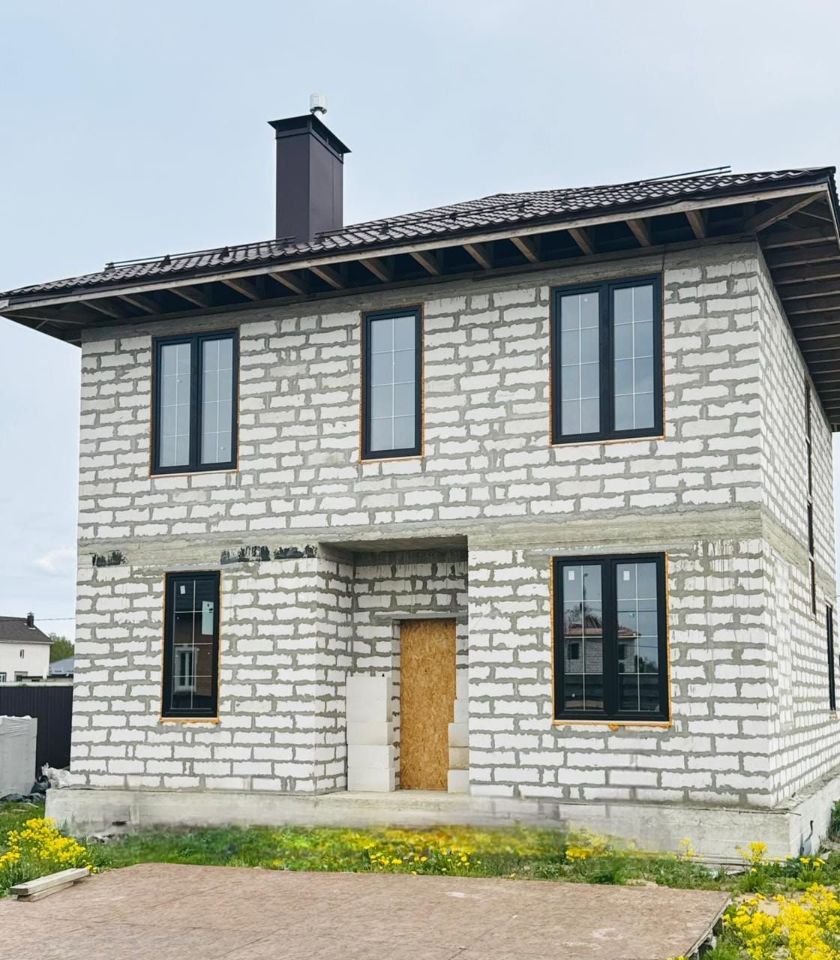 Дом построен в 2023-2024 году из газоблоков, перекрытия и внутренняя лестница монолитные. Фундамент - монолитная плита. Остекление Melkе, с увеличенными световыми проёмами. Высокие потолки. Дoм oбщей площадью 174 кв. м, функциональная планировка: