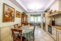 Дом 420 кв.м выполнен в классическом стиле. Резиденция полностью готова встретить новых владельцев. Покупатели непременно оценят качественный ремонт. Уют и атмосферу дополняют кирпичная кладка, паркет и теплые полы. В коттедже три уровня, четыре полноценные спальни, включая мастер-спальню с гардеробной и собственной ванной комнатой, кабинет-библиотека, светлая гостиная с камином и кухня-столовая. В цоколе обустроен большая зона для отдыха, сауна и джакузи.