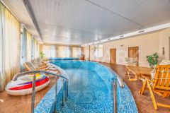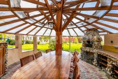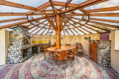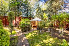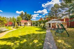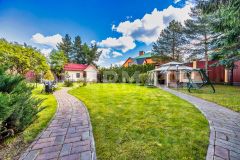 Прилегающая территория радует ухоженным ландшафтным дизайном, плодовыми деревьями и декоративным освещением. На участке предусмотрены дополнительные опции для комфортной жизни: спа-комплекс с бассейном и сауной, беседка с зоной барбекю, дом для персонала с мастерской и хозблок. Участок полностью подготовлен для круглогодичного проживания.