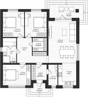 Одноэтажный дом для комфортной загородной жизни с элементами стиля Прерий - вальмовая многоскатная крыша, преобладание горизонтальных линий, терраса,