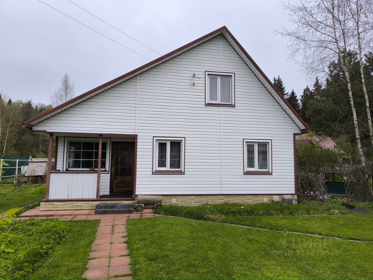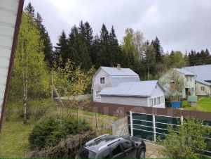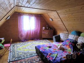 Дом летний, большой, полностью обнесен сайдингом, на первом этаже большой зал с возможностью принять гостей за большим столом, далее большая кухонная зона. Стоит диван и висит телевизор. Есть твердоотапливаемая печь, можно топить как дровами, так и углем. Далее есть еще 3 комнаты (спальня, гостинная и маленькая детская). Второй этаж - одна большая спальня.