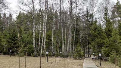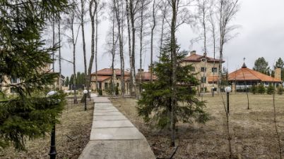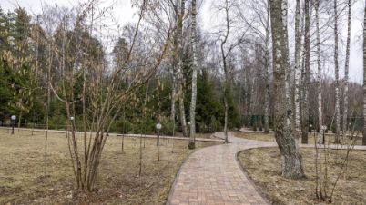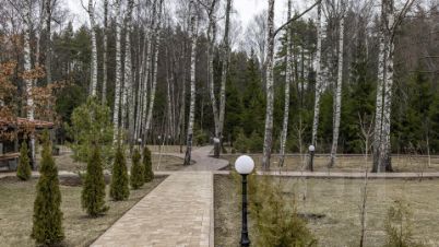 Участок площадью 180 соток, из которых 100 находятся в аренде, а 80 — в частной собственности, притягивает внимание своими живописными пейзажами, открывающимися на лесной массив. По всей площади выполнены дренажные работы, засеян газон и посажено более 3000 видов деревьев. Для комфортных прогулок проложены дорожки и установлено уличное освещение. Дополнительно перед домом организована парковочная площадка для гостей.