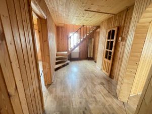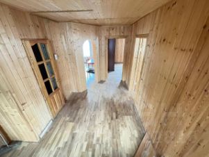 Дом 2 этажа из бруса, 200 кв.м, внешняя отделка - блок-хаус, внутренняя отделка - вагонка. Фундамент - бетонная плита 40 см. На первом этаже расположены совмещенный санузел, холл, кухня, 2 комнаты.