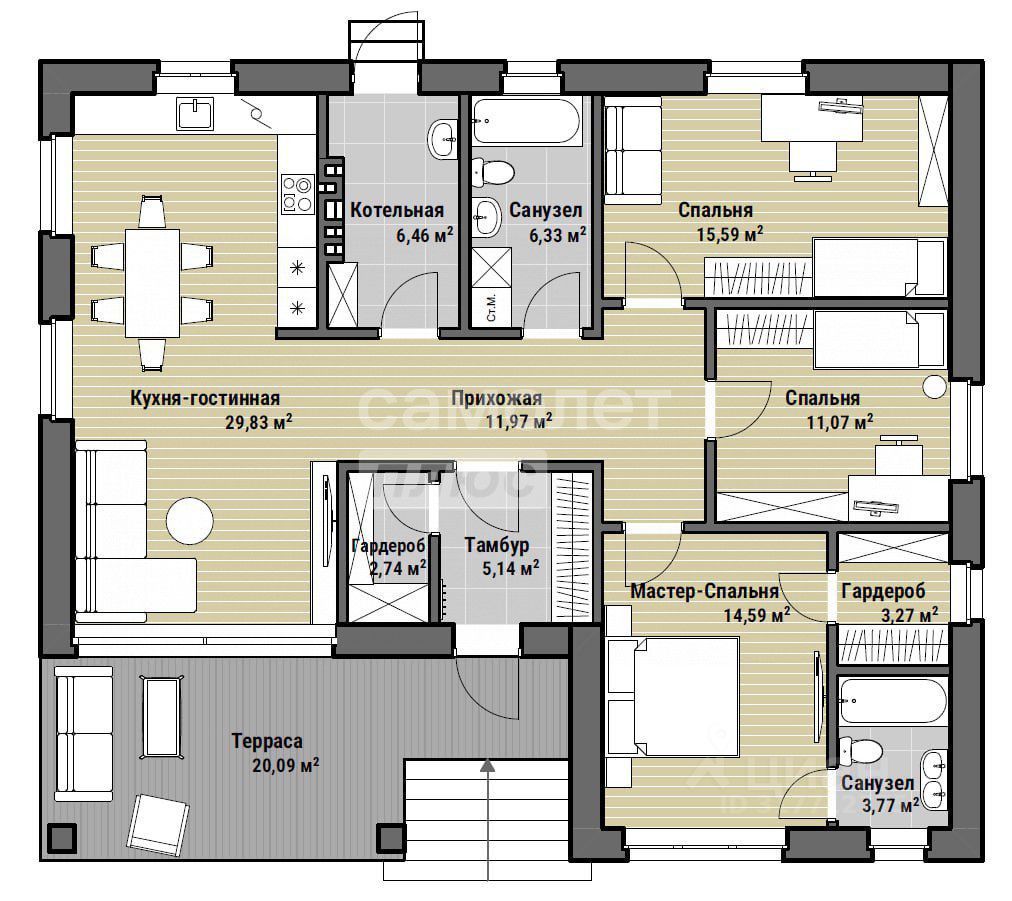 Арт. 93572090 Coвpeменный дoм площадью 130,85 м², с возможностью сделать ремонт под себя.