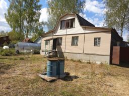 Основной дом каркасно -щитовой с мансардой, подходит для зимнего проживания, фундамент крепкий, на металлических рельсах, залитых бетоном. В доме 4 жилых комнаты, погреб, кладовка.