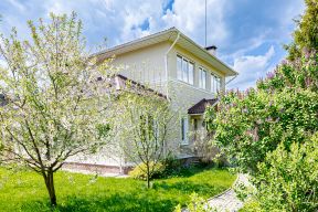 На участке выполнен ЛАНДШАФТНЫЙ ДИЗАЙН, выстелен газон, растут плодовые деревья, сирень, кустарники и цветы. Есть крытая беседка с барбекю и мини-кухней, двухэтажный дом (83 м2) с гаражом и блоком для персонала.