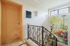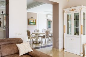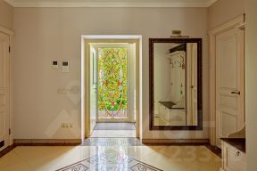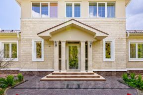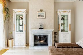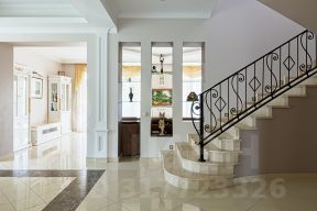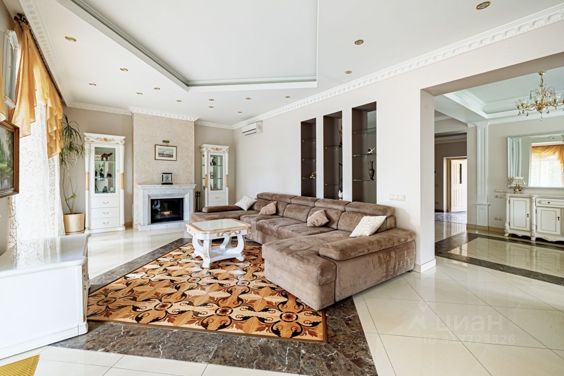 Натуральные материалы в отделке. Камин и лестница выполнены из мрамора, на колоннах - травертин, мебель с элементами оникса.