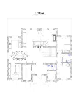 1 этаж: холл, гостиная с камином и выходом на террасу (50 м2), столовая, кухня, кабинет, спальня с собственным с/у, спальня, гостевой санузел, гардеробная, котельная.