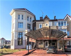 В отделке использованы натуральные материалы: дубовые лестница, двери и паркет, столешницы из камня на кухне и в ванных комнатах. Таунхаус полностью укомплектован встроенной техникой известных европейских брендов.