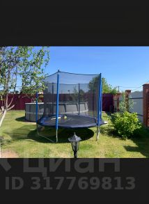 Ухоженный участок, замен газоном, зона грядок с теплицей, зона отдыха-батут, бассейн, теннисный стол
