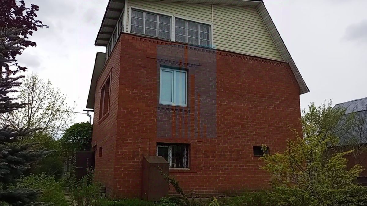 Продается трехэтажный дом расположенный в деревне Репниково на территории садоводческого товарищества Спутник, Московской области, г.о. Чехов. Строение смешанное. 2011 года постройки. Назначение нежилое. Первый этаж из блоков, второй из бруса, третий каркасно - обшивной. Дом площадью 114 квадратных метров. На первом этаже: гараж, кухня, санузел. На втором этаже спальня и проходная комната. Со второго этажа есть выход на улицу по лестнице вниз. На третьем этаже спальня и комната для отдыха (веранда). На участке 6 соток расположены дополнительно банька и шатер с барбекю. Участок огорожен забором из профлиста.