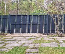 Поставили новый забор из евроштакетника двусторонней покраской.