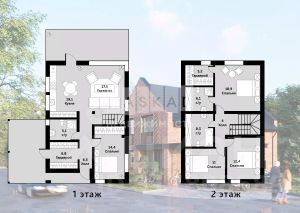 1 этаж: кухня-гостиная, спальня, гардероб, 1 с/у