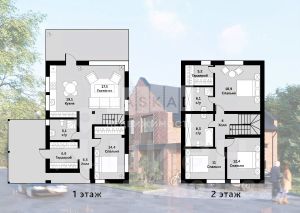 2 этаж: 3 спальни, гардероб, 2 с/у