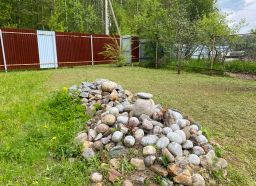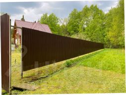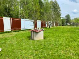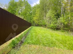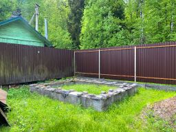 Участок крайний, соседей минимум. 8 соток, отмежеван, огорожен. Есть плодово-ягодные деревья и кустарники. Залит фундамент под баню.
