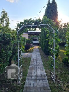 А так же расположен гараж (5,6х6,5), построен из пеноблока, отштукатурен внутри снаружи и покрашен, на фундаменте из монолитной плиты. Ворота подъемные, площадка перед гаражом (6,4х8) под навесом из поликарбоната. Все дорожки и площадки на участке выложены из тротуарной плитки. Участок оснащен дренажной системой для отвода дождевых и грунтовых вод от строений.