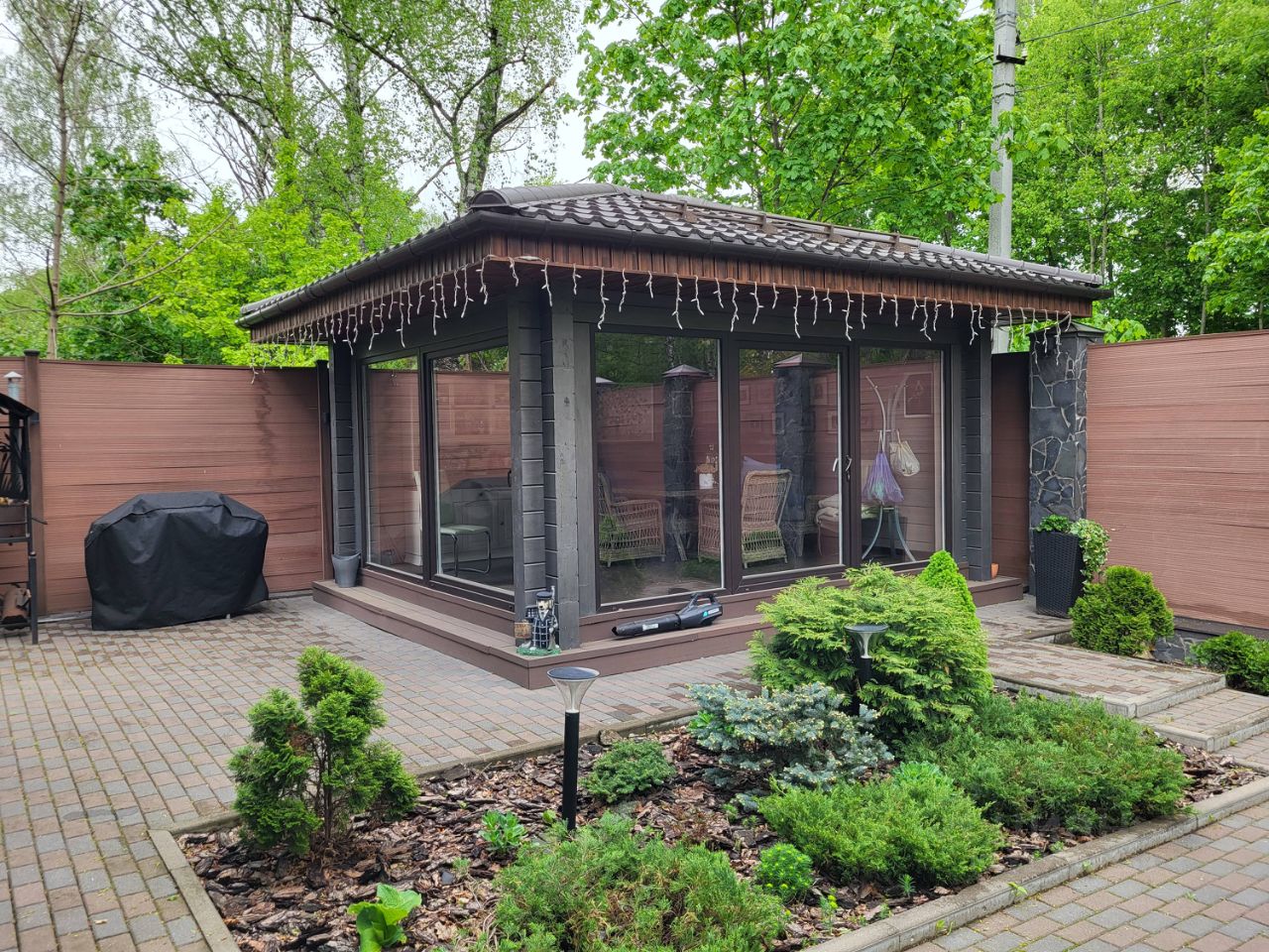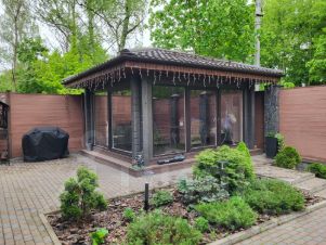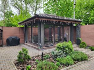 Дополнительные удобства: просторный благоустроенный участок включает современный капитальный гараж, удобную зону отдыха с красивой деревянной беседкой для вечерних посиделок всей семьей и друзьями.