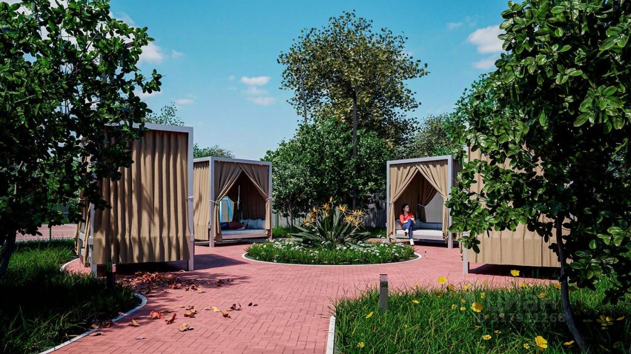 - Парковая зона с беседками, столами и зонами отдыха, зоной барбекю;