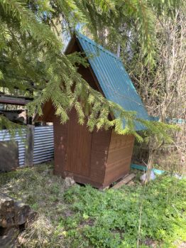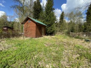 Земли населенных пунктов, под садоводство. На участке еще есть хозпостройка 4 м х 6 м х 3,5 м (h) (можно переделать в баню или использовать как гостевой домик, мастерскую и т.п.) Благоустроенный санузел в отдельном строении у леса.