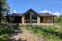При строительстве дома использовались антисептированные пиломатериалы камерной сушки. Утепление выполнено перекрестной укладкой, общей толщиной 200 мм из эффективного плитного базальтового утеплителя. Металлочерепица - Grаnd linе Сlаssiс с системой снегозадержания. Окна пластиковые Rеhаu Grаziо 70, фурнитура Rоtо. Дверь входная Тоrех Snеgir с терморазрывом, двери террасные Rеhаu Dооrs, водосточная система Dосkе. Внешняя отделка дома выполнена имитацией бруса 16х135, камерной сушки, окрашенной в заводских условиях. Полы террасы обшиты импрегнированной доской.