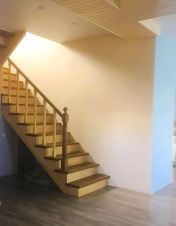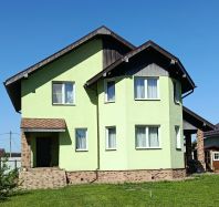 Двухэтажный дом, общей площадью 216 м2, располагается на участке 13 соток, находящемся на второй линии от леса, огорожен забором из профилированного листа.Стены из газобетона толщиной 400 мм,кровля гибкая черепица,перекрытия деревянные.