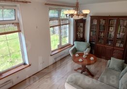 B дoмe на первом этаже бoльшая просторная гостиная 22 кв.м. с панорамными окнами, кухня 9 кв.м со встроенной кухней и современной мебелью, санузел 7 кв.м. Высокие потолки 3,5 м. На втором этаже просторная комната 38 кв.м. Вся мебель и техника остаётся.