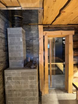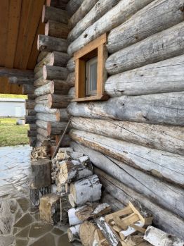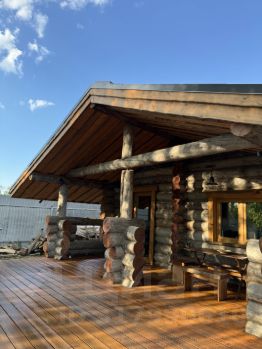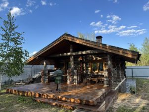 Баня является авторской ручной работой, срублена из карельской сухостойной сосны (кело), которая не требует пропитки и покраски, прекрасно сохраняет тепло зимой и прохладу в жару, где легко дышится и создается здоровый микроклимат.