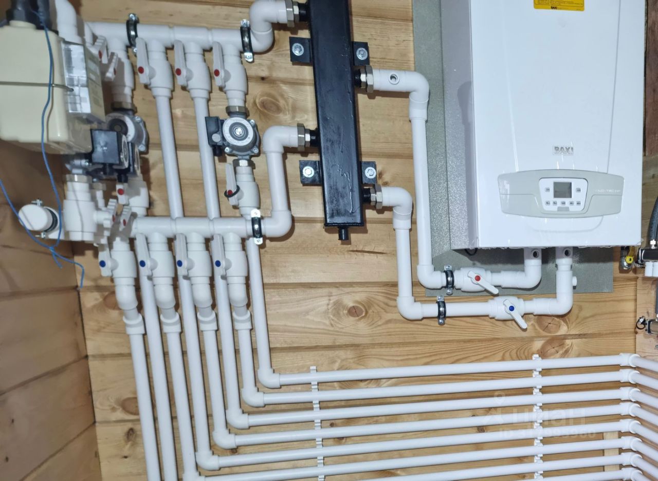 В дом уже заведены все центральные коммуникации: электричество мощностью 15 кВт, магистральный газ, водопровод, который обеспечивается скважиной, и канализация с использованием септика. Это позволяет сразу же начать комфортное проживание без необходимости проводить дополнительные работы по подключению.