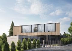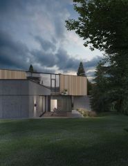 "Резиденция "Эва" это изначально уникальный стиль резиденции. Здесь и динамичное взаимодействие с рельефом, и ненавязчивое соединение уровней, и большая площадь панорамного остекления. Фасадная часть строения смотрит в долину ручья, на зелёные кровли, как бы распахивая ощущение объема из окон. Взрослые деревья гармонично обрамляют внутренний двор и патио, создавая особую эстетику тектонических структур на фоне сказочного леса. И изнутри, и снаружи здание словно врезано в ландшафт, позволяя архитектурным мультиформам взаимодействовать с ним с любого ракурса. А органичная структура наделяет каждую деталь жизненной энергией. ""Простота формы при сложности мысли"", - таков лейтмотив всей резиденции."