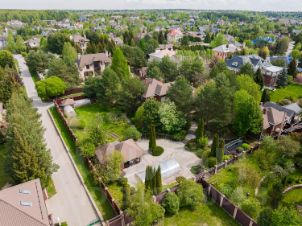 Домовладение имеет очень приватное расположение в поселке на тупиковой улице с удобным подъездом, вблизи с лесом. И так как этот участок самый высокий в поселке из дома открываются живописные виды на лес.
