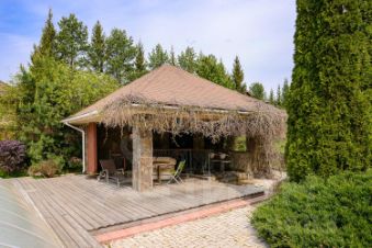 Помимо основного дома на участке есть летний бассейн 10м. с беседкой барбекю со всем современным оборудованием, а также гостевой дом с баней 150 кв.м., и небольшой домик для персонала.