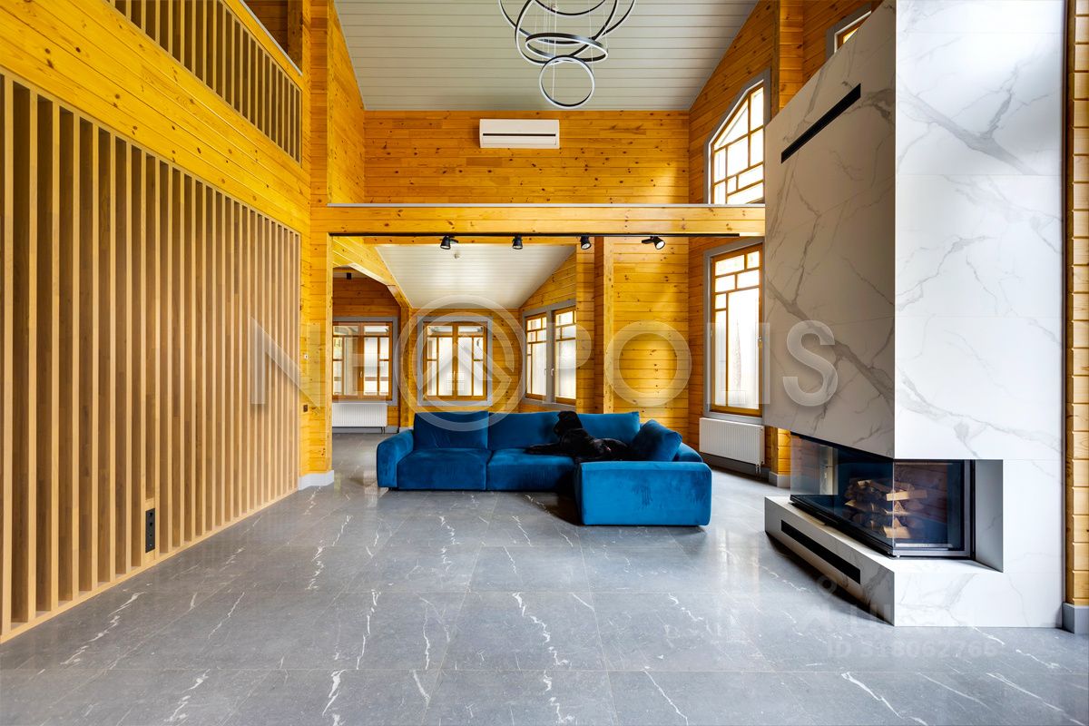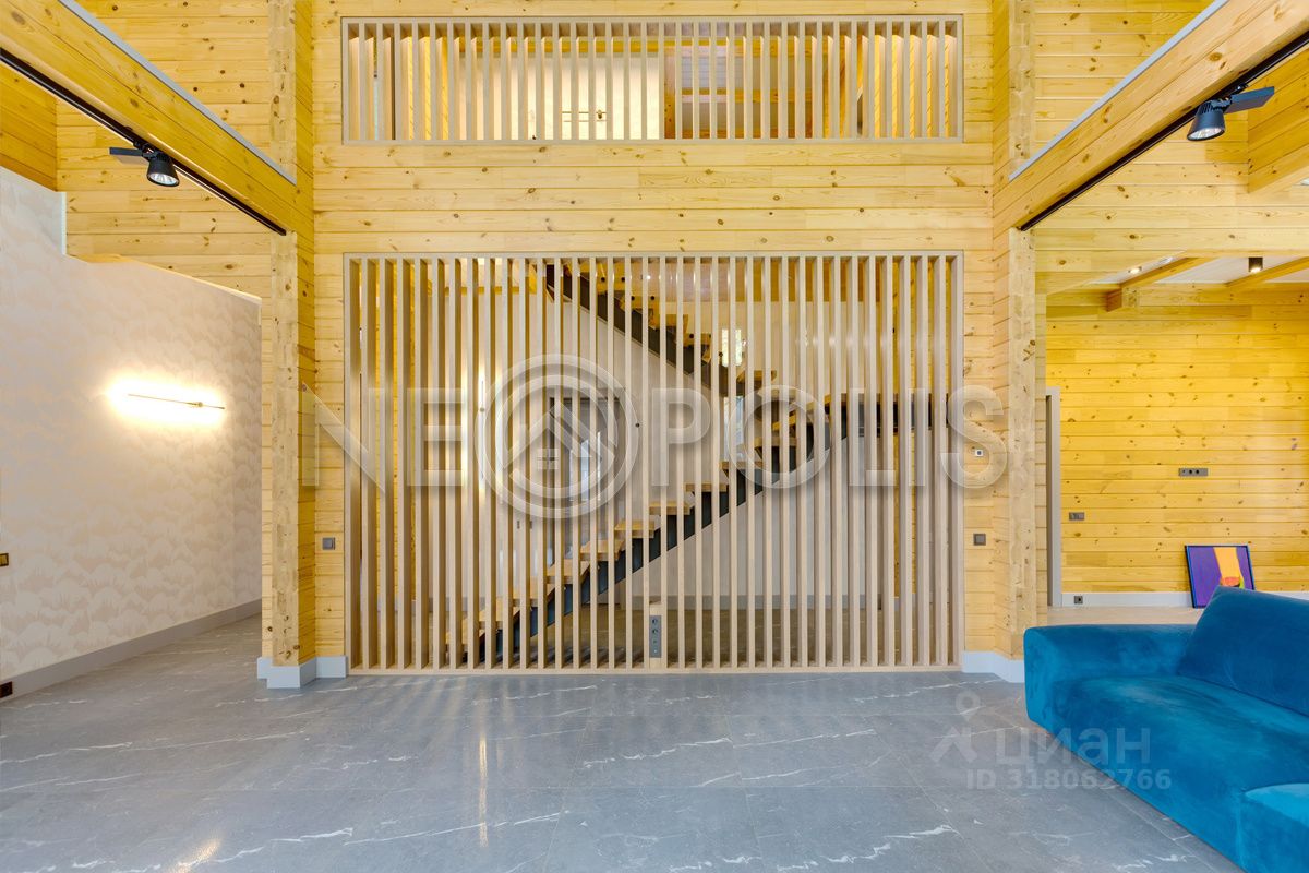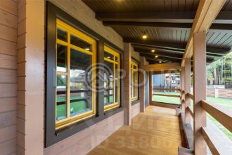 Просторный дом из ангарской сосны, площадью 414 кв.м., на зеленом участке в закрытом коттеджном поселке.