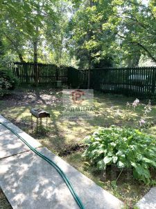 Участок 8 соток правильной формы, без уклона, огорожен забором. Ворота и калитка очень мощные, забетонирована площадка для въезда и парковки автомобиля, дорожка от калитки до дома.