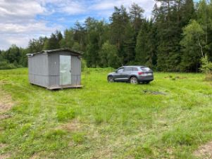 Участок готов к строительству. К участку подведено и оформлено электричество, установлен счетчик. Так же установлена вагон-бытовка с новой крышей. Можно сразу приступать к строительству. Соседние участки активно застраиваются. Силами жильцов дороги приводятся в порядок.
