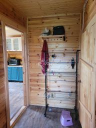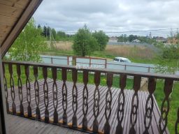 Дом брусовой с утеплителем, снаружи и внутри обшит вагонкой площадью 83,5 кв.м с просторной открытой верандой 16 кв.м. В доме оборудованы все удобства для комфортного проживания: на первом этаже просторная кухня-гостиная общей площадью 22 кв.м, раздельный санузел, сауна; на втором этаже две изолировыанные комнаты, удобная лестница, балкон. В дом подведены электричество и водопровод, есть водонагреватель, канализация - отстойник, отопление печное.