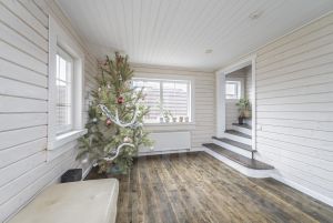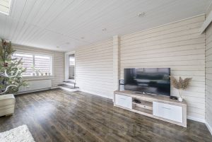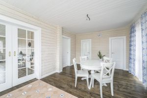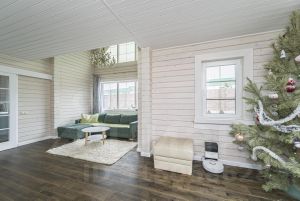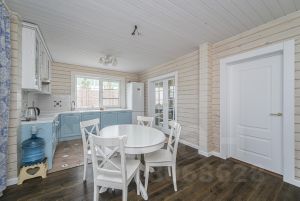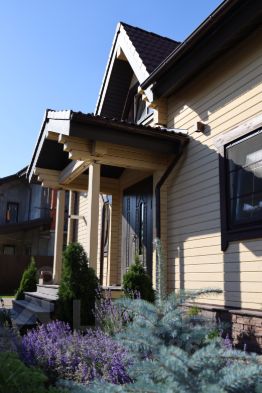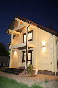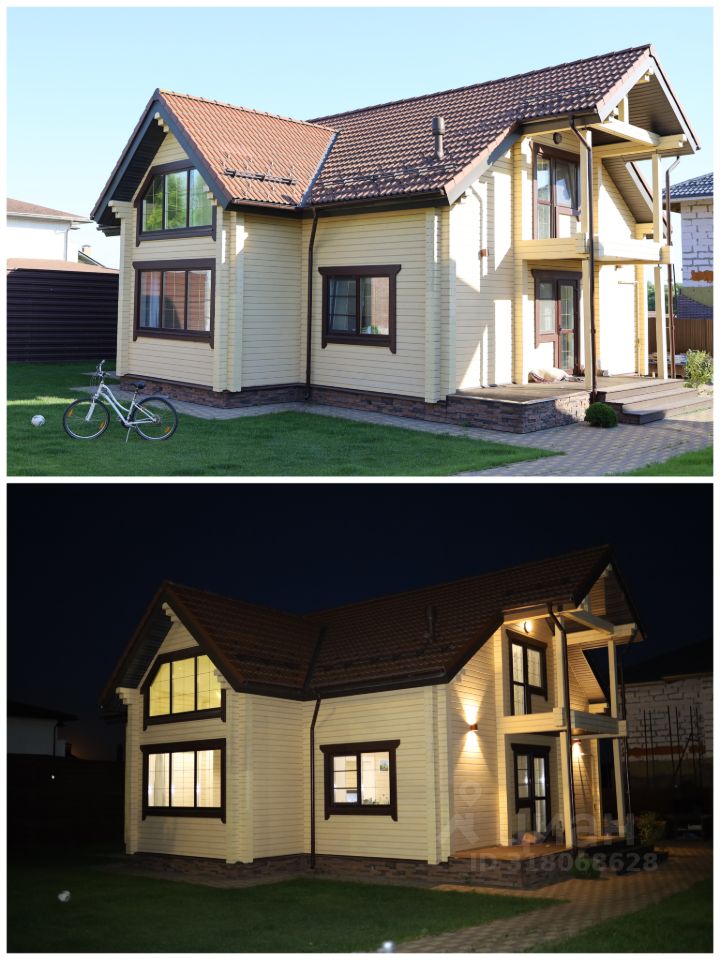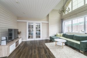 Площадь дома 175 кв. м, двухэтажный из клееного бруса. Проект финской компании Нirsitеt Оmеlа. Производитель клеёного бруса компания GrееnSidе (премиальный производитель бруса в России), материал северная сосна (Кировская обл.). Окраска дома немецким премиальным маслом Оsmо (внутри и снаружи), окна rеhаu intеliо. Крыша из натуральной черепицы австрийской компании Вrаss, цоколь выложен камнем.