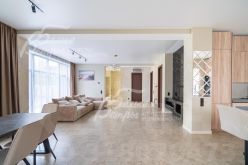 Стадия готовности: меблирован (частично: кухня с островом и встроенной техникой, обеденная зона, диван в гостиной и биокамин).