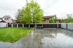 Благоустройство участка: участок облагорожен: уложен профессиональный газон, высажены хвойные и декоративные деревья, растёт красивый статный дуб, вокруг дома выполнена подсветка. Зона подъезда до гаража выложена тротуарной плиткой на бетонном основании. По периметру участка проходит ливневая система.