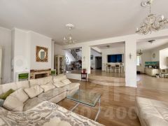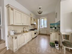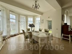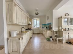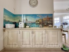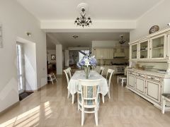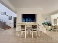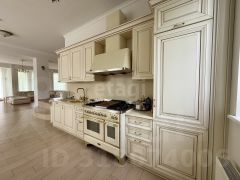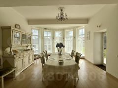 - 1 этаж:стильная итальянская кухня с элитной мебелью и техникой, уютная столовая с панарамными окнами и выходом в сад, светлая гостиная с камином 53м2, санузел. Входная зона: коридор с гардеробной. Холл с широкой дубовой лестницей и вторым светом с высотой потолков 6 метров и шикарной классической люстрой. Огромное витражное окно высотой 5,20м.