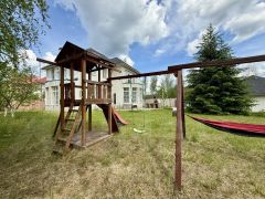 -Детский развлекательный комплекс с горкой, качелями и скалодромом на участке.