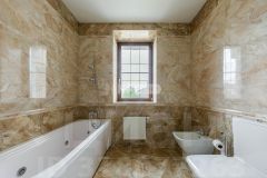 Первый этаж: прихожая, кухня-столовая, уютная гостиная с камином, кабинет, который может служить дополнительной спальней, 2 санузла, бильярдная.