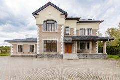 Дом в классической архитектуре с видом на лес в КП "Монтевиль" на Новой Риге. Площадь особняка с 5-ю спальнями: 600 м.² Двухэтажный дом представлен "под ключ" и возведен в стиле классической архитектуры. Из больших окон открывается вдохновляющий вид на лес. На открытой террасе будет приятно устраивать душевные посиделки и читать книгу за чашкой ароматного кофе.