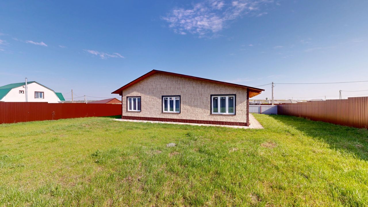 Построен из пеноблоков на монолитной плите, с крышей из металлочерепицы и окнами-стеклопакетами. К дому пристроена веранда со входом в дом, которая может быть застеклена.