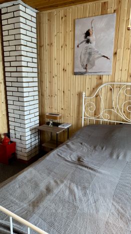 Двух этажный дом площадью 133,5 кв. м. из пеноблоков, фундамент ленточный из бетона. БЕЗ МЕБЕЛИ. На первом этаже большая просторная веранда, отапливаемая прихожая, гостиная, камин, кухня, две спальни, санузел, душевая кабина. На втором этаже две большие комнаты. Окна: пластиковые стеклопакеты, на всех окнах установлены защитные рольставни.