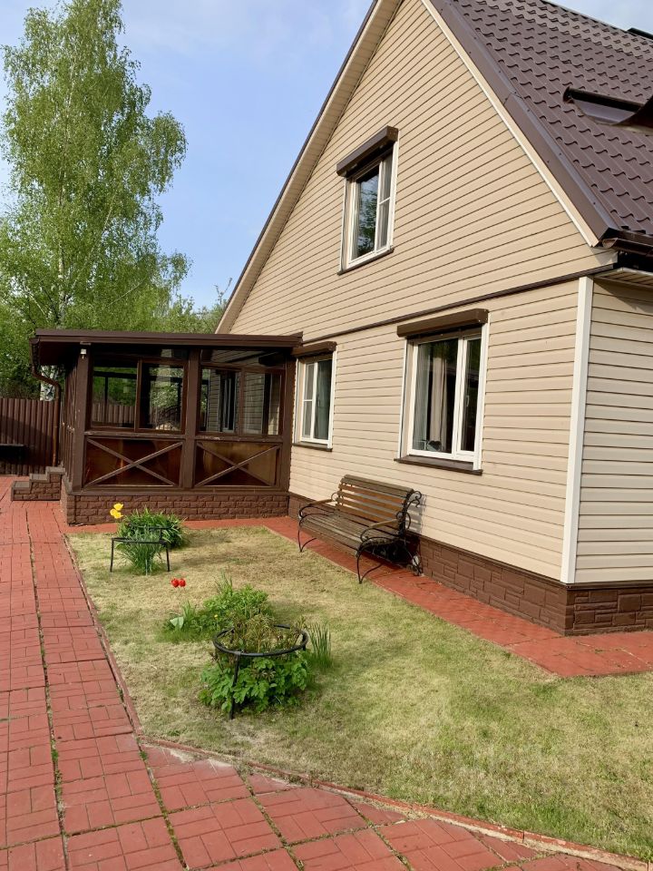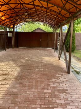 Ухоженный участок площадью 9 соток с плодовыми деревьями, кустарниками, красивым газоном, по периметру всего участка забор, уличное освещение, автоматические ворота, стоянка под навесом для четырех машин, дровница, беседка, мангальная зона, уличный спортивный комплекс, на участке и по его периметру установлено видеонаблюдение.